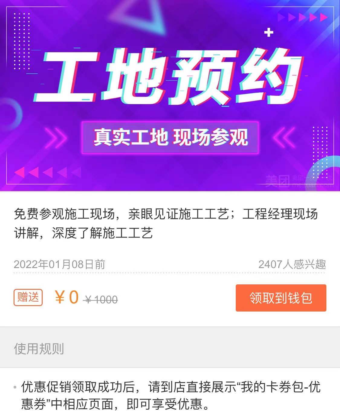 免费参观施工现场,亲眼见证施工工艺;工程经理现场讲解